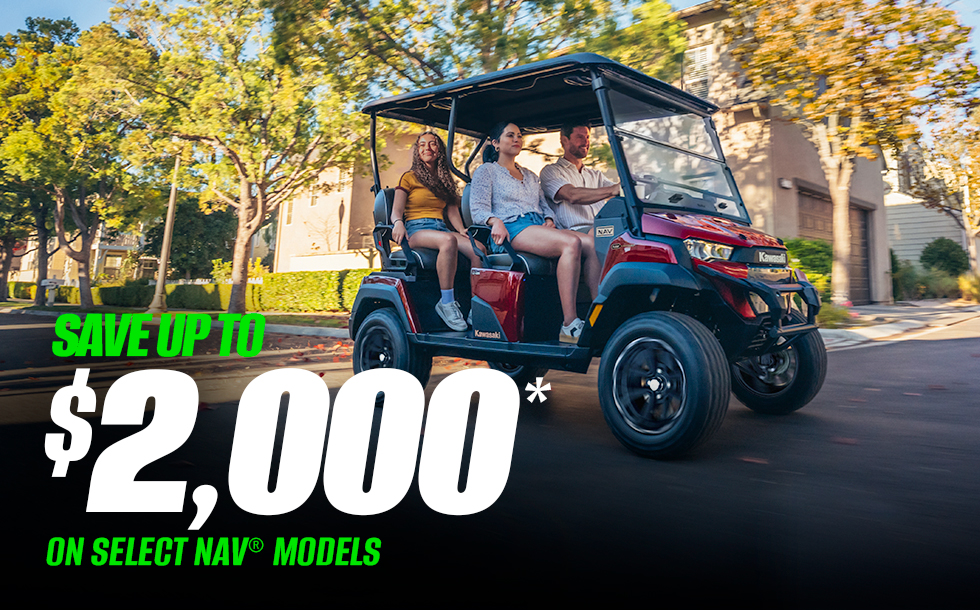 *Model & year exclusions apply. May be combined with promotional retail financing rates. Incentives are available at participating Kawasaki dealerships. Offer valid through 12/31/2025. Subject to change without notice. Offer available on approved purchases of select new unregistered Kawasaki vehicles.